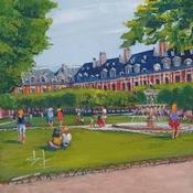 Après-midi d'été place des  Vosges à  Paris Peinture Après-midi d'été place des  Vosges à  Paris  par Degabriel Véronique | Tableau Réalisme Paysages Urbain Scènes de vie Huile