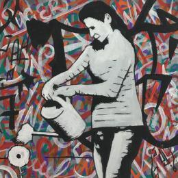 L'artiste a utilisé les techniques Graffiti, Acrylique pour créer cette peinture petit format sur toile de style Street Art sur le thème scènes de vie.