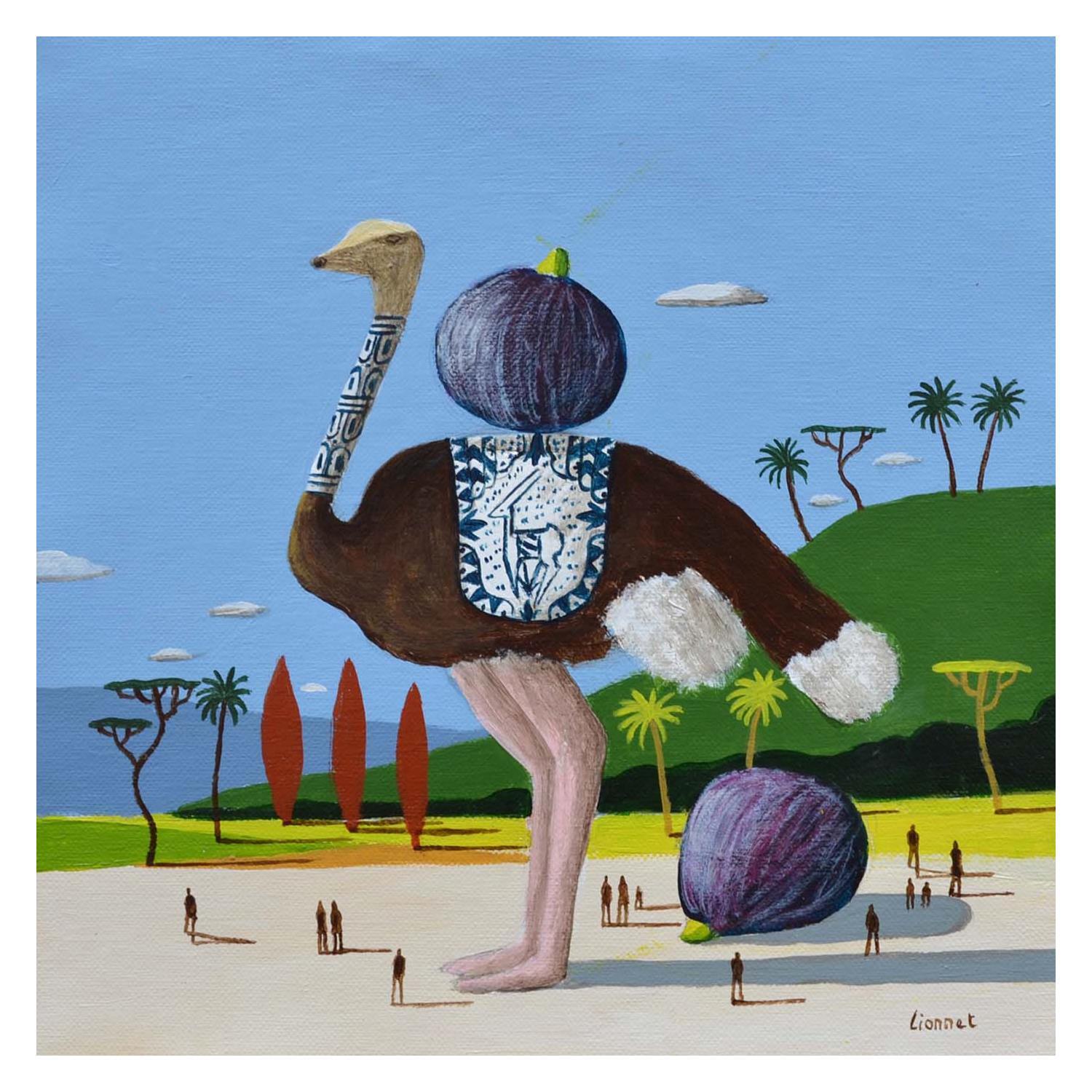 Cette oeuvre d'art contemporain unique et originale "Autruche aux figues" a été réalisée par l'artiste contemporain Lionnet Pascal.