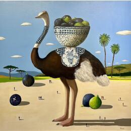 Peinture Autruche et figues par Lionnet Pascal | Tableau Surréalisme Acrylique
