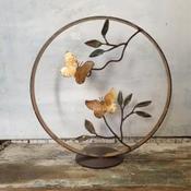 Sculpture 2 papillons avec feuilles vertes par Eres Nicolas | Sculpture Figuratif Animaux Métal