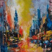 L'artiste a utilisé la technique Acrylique pour créer cette peinture petit format sur Toile de style Abstrait sur les thèmes Architecture, Urbain.