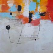 L'artiste a utilisé les techniques Acrylique, Collage pour créer cette peinture petit format sur Carton de style Abstrait.