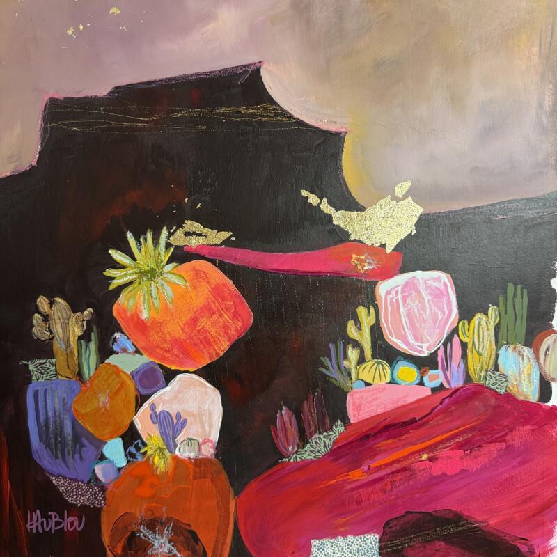 L'artiste a utilisé les techniques Acrylique, Carton, Collage, Feuille d'or, Pastel pour créer cette peinture petit format sur Carton de style Abstrait.