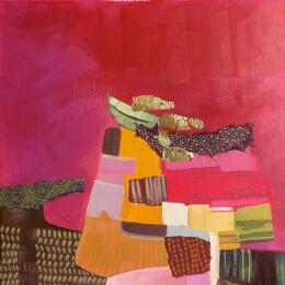 L'artiste a utilisé les techniques Acrylique, Carton, Collage, Feuille d'or, Pastel pour créer cette peinture petit format sur Carton de style Abstrait.
