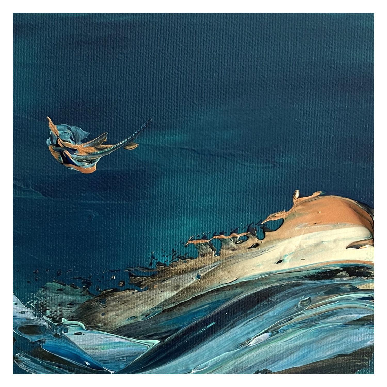 L'artiste a utilisé la technique Acrylique pour créer cette peinture petit format sur Toile de style Abstrait sur les thèmes Marine, Nature.