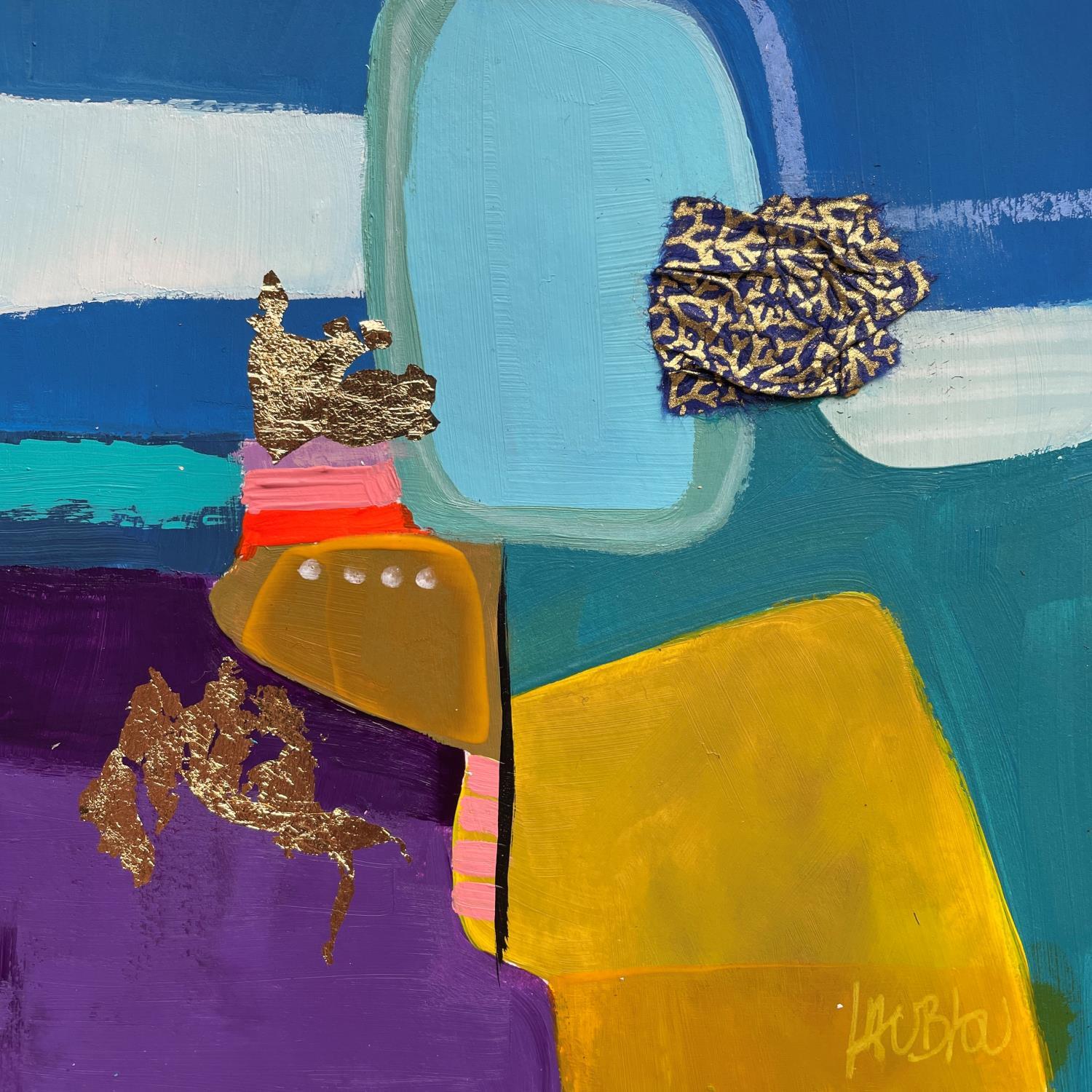 L'artiste a utilisé les techniques Acrylique, Collage, Feuille d'or pour créer cette peinture petit format sur Carton de style Abstrait sur le thème Minimaliste.