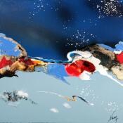 L'artiste a utilisé les techniques Acrylique, Encre pour créer cette peinture petit format sur Autre de style Abstrait.
