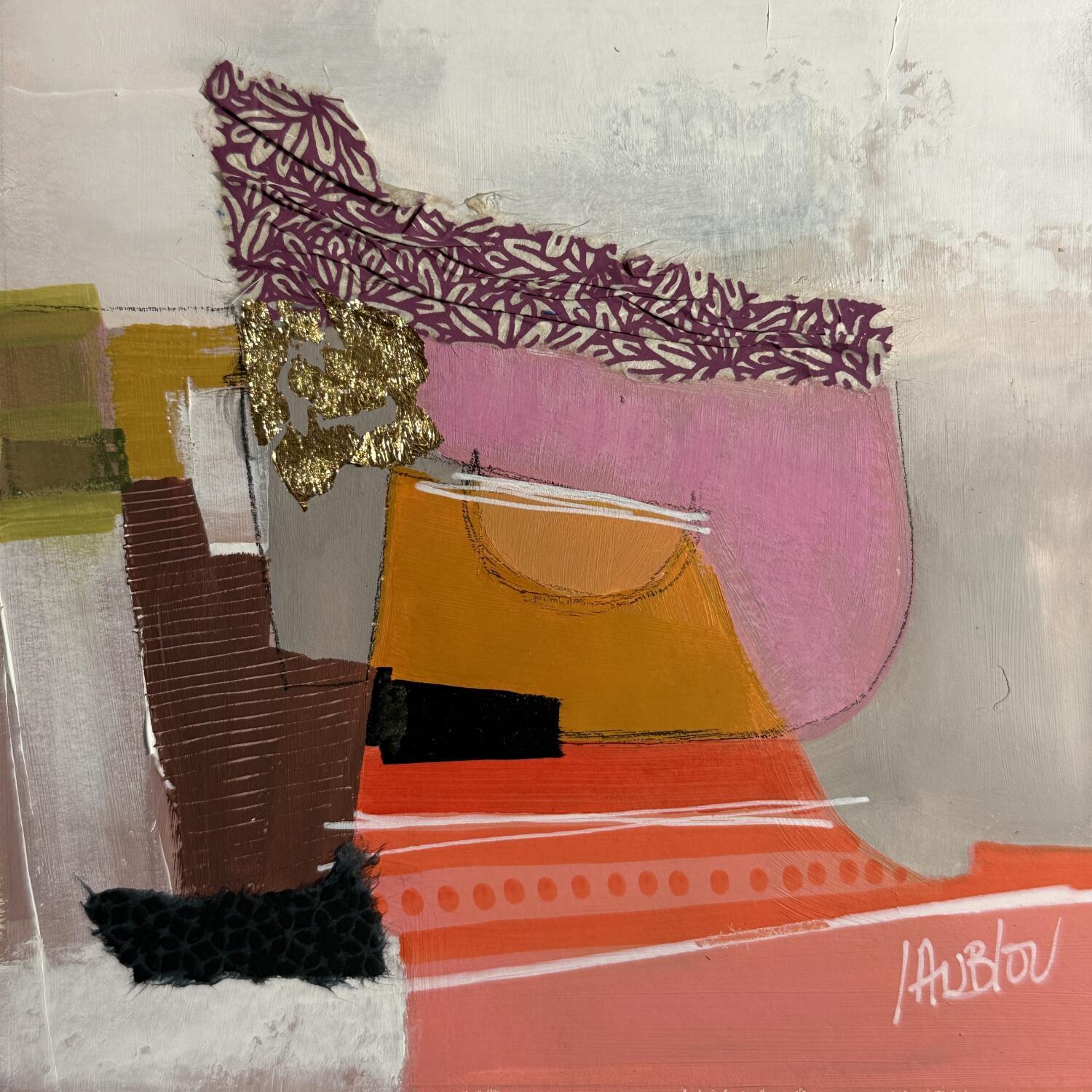 L'artiste a utilisé les techniques Pastel, Acrylique, Carton, Collage, Feuille d'or pour créer cette peinture petit format sur Carton de style Abstrait.