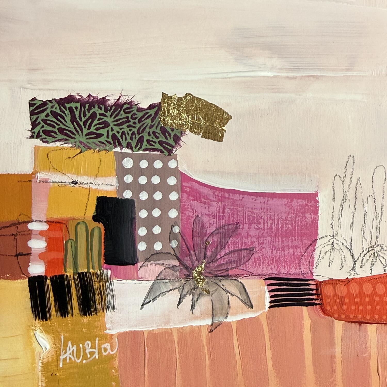 L'artiste a utilisé les techniques Pastel, Acrylique, Carton, Collage, Feuille d'or pour créer cette peinture petit format sur Carton de style Abstrait.