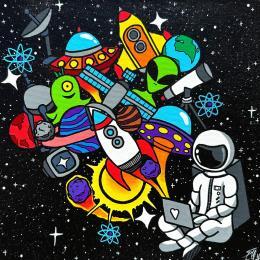 Cette œuvre d'art contemporain unique et originale "Les infos du Web" a été réalisée par l'artiste contemporain Elly.