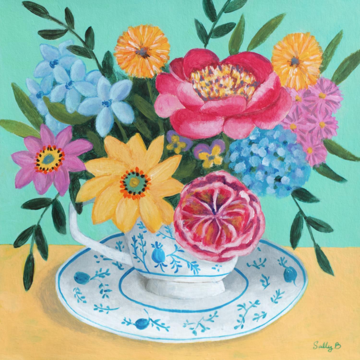 Cette oeuvre d'art contemporain unique et originale "Bouquet fleurs dans une tasse" a été réalisée par l'artiste contemporain Sally B.