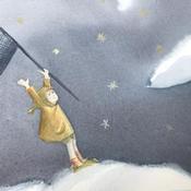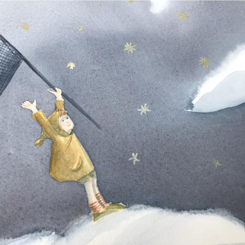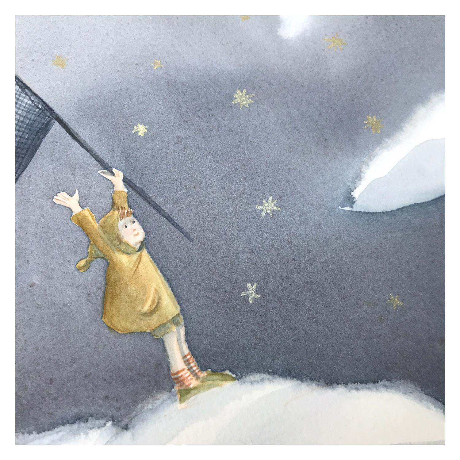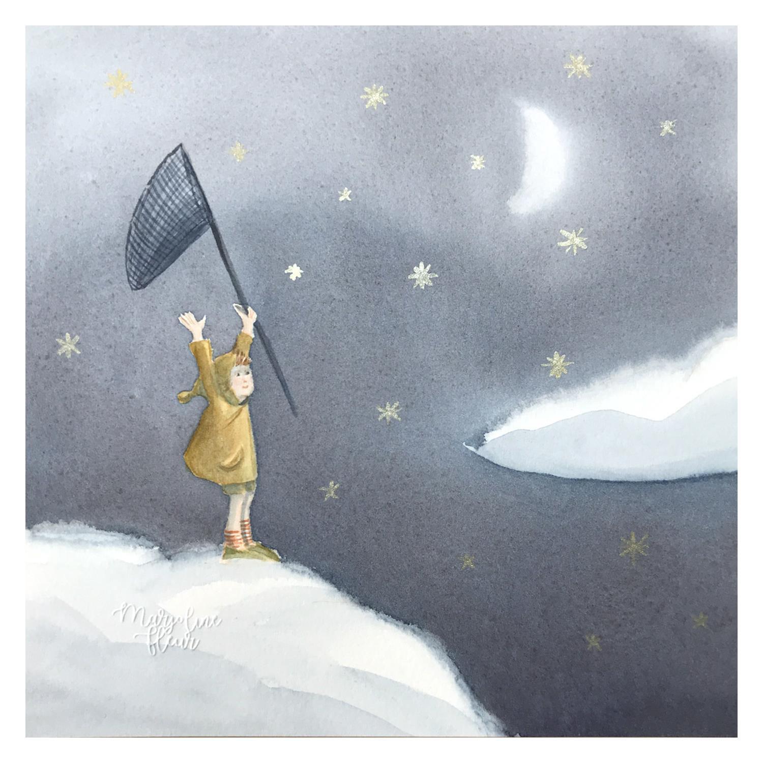 Cette œuvre d'art contemporain unique et originale "Pêcheur d'étoiles" a été réalisée par l'artiste contemporain Marjoline Fleur.