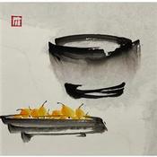 L'artiste a utilisé différentes techniques pour créer cette peinture petit format sur papier de style Art naïf sur les thèmes scènes de vie, Natures mortes, noir & blanc.