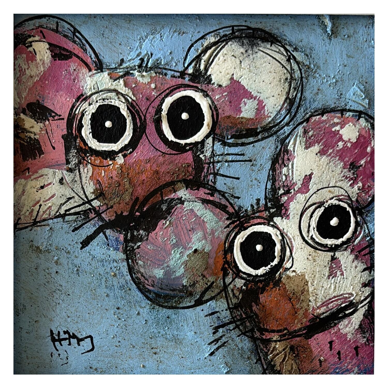 Cette oeuvre d'art contemporain unique et originale "2 souris roses" a été réalisée par l'artiste contemporain Maury Hervé.