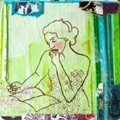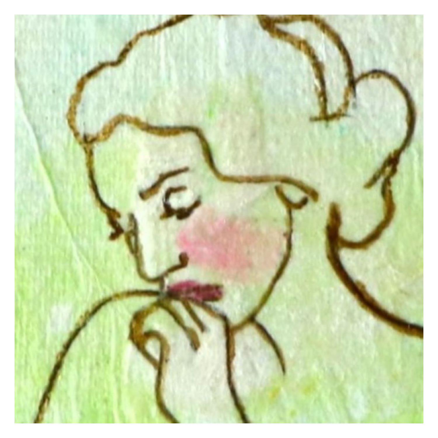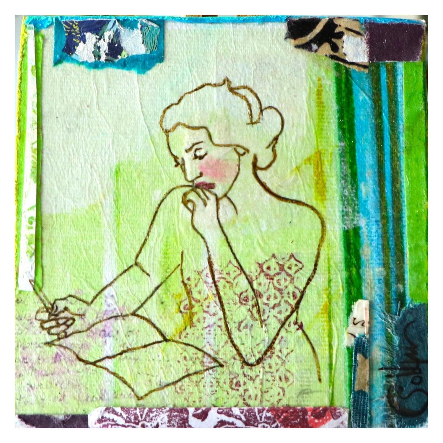 L'artiste a utilisé la technique mixte , Estampage, Encre, Acrylique, Collage d'art, Upcycling pour créer cette peinture petit format toile sur Bois de style Art Singulier sur le thème Scènes de vie.