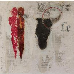 L'artiste a utilisé les techniques Acrylique, Collage, Sable pour créer cette peinture petit format sur Carton toilé de style Art Singulier.