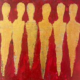 L'artiste a utilisé les techniques Acrylique, Collage, Sable pour créer cette peinture petit format sur Carton toilé de style Art Singulier.