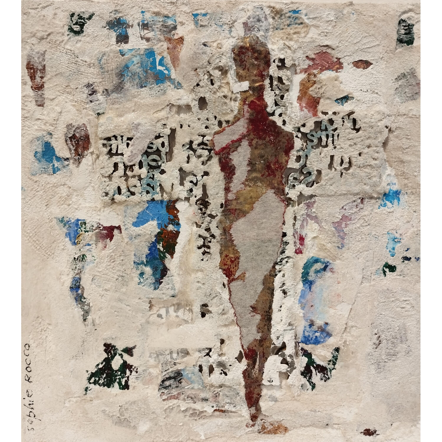L'artiste a utilisé les techniques Acrylique, Collage, Sable pour créer cette peinture petit format sur Carton toilé de style Art Singulier.