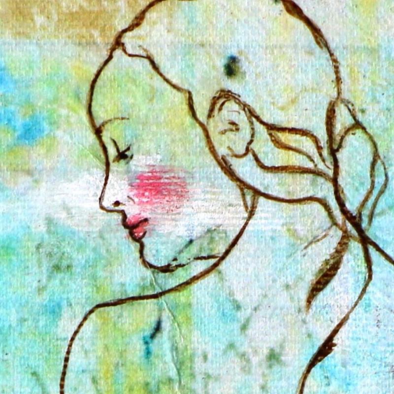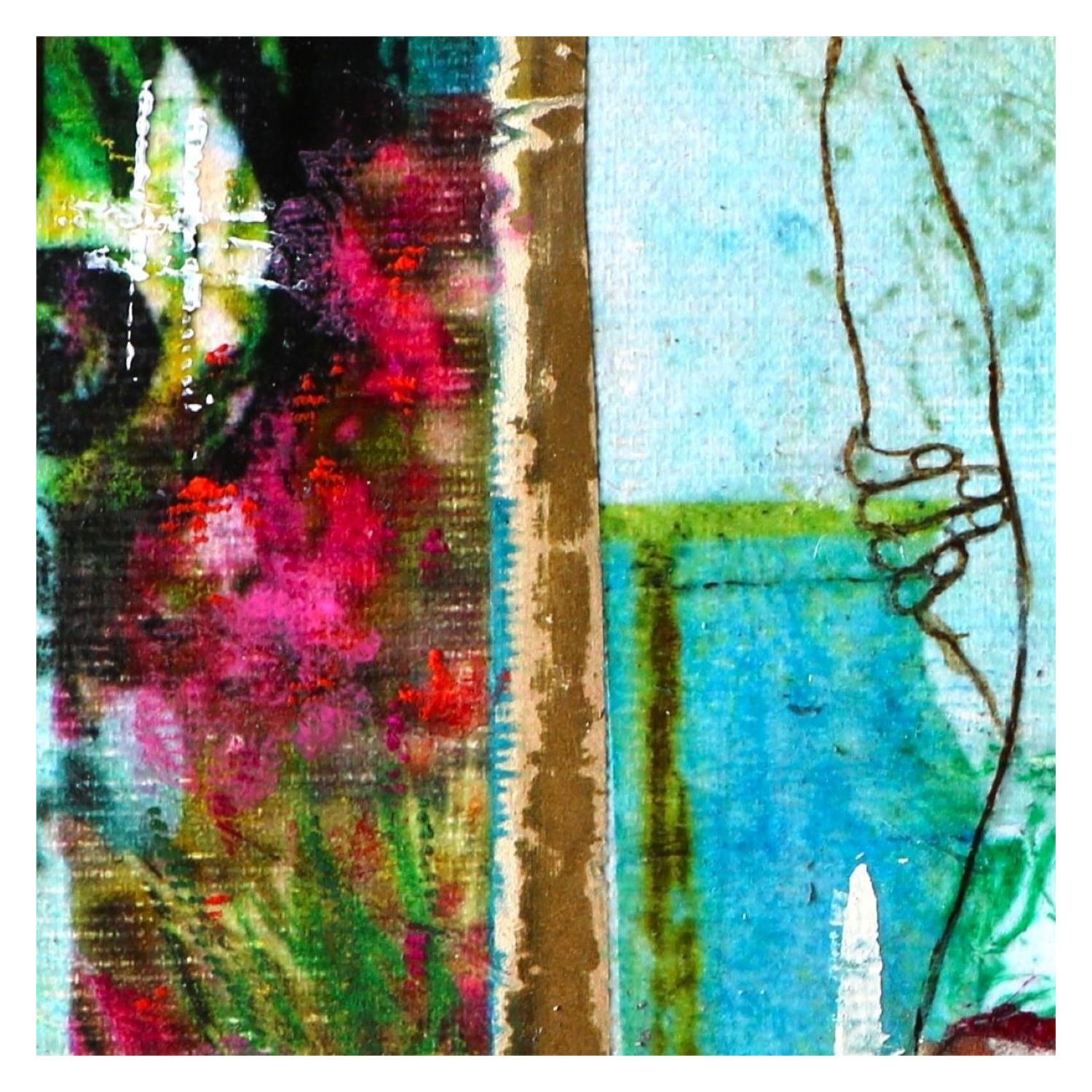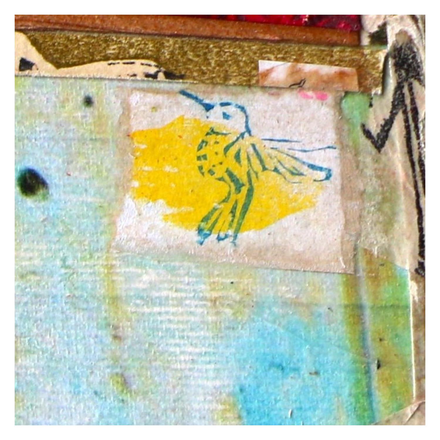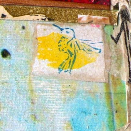 L'artiste a utilisé la technique mixte , Estampage, Encre, Acrylique, Collage d'art, Upcycling pour créer cette peinture petit format toile sur Bois de style Art Singulier sur le thème Scènes de vie.