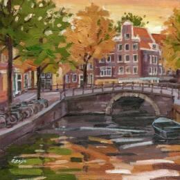 Peinture Automne à Amsterdam par Elisabeth Bazin | Tableau