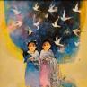 L'artiste a utilisé les techniques Acrylique, Collage pour créer cette peinture petit format sur Papier de style Figuratif sur les thèmes Animaux, Enfant.