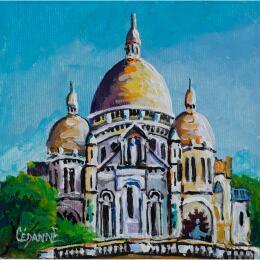 Cette œuvre d'art contemporain unique et originale, de style figuratif, a été réalisée par le peintre Cèdanne. L'artiste a utilisé différentes techniques pour créer cette peinture sur toile petit format, et traiter cette vue du Sacré-Cœur avec le style singulier qui lui est propre.
