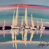 L'artiste a utilisé la technique Acrylique pour créer cette peinture petit format sur Carton toilé de style Figuratif sur le thème Marine.