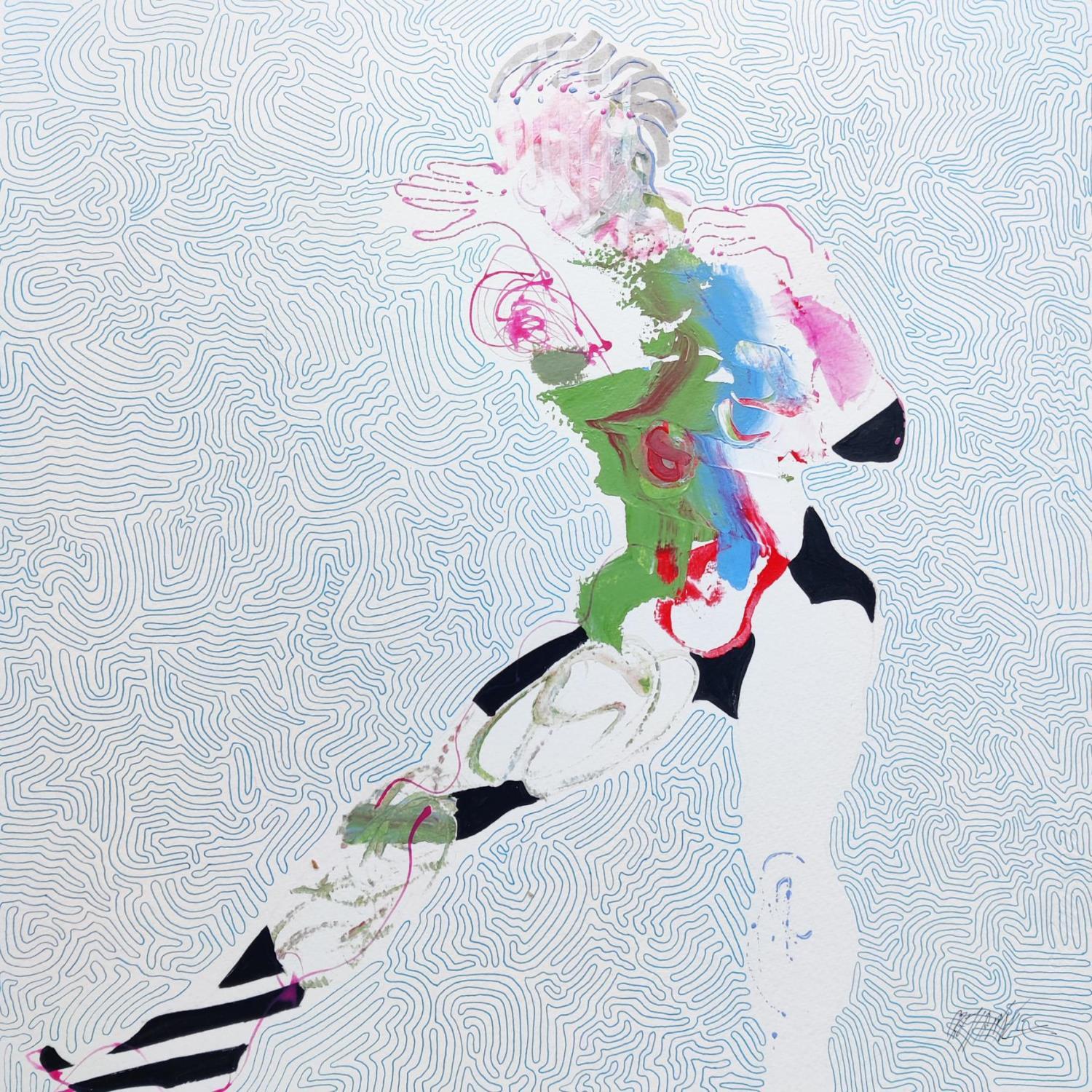 L'artiste a utilisé les techniques Acrylique, Encre pour créer cette peinture petit format sur Papier de style Figuratif sur le thème Nu.