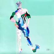 L'artiste a utilisé les techniques Acrylique, Encre pour créer cette peinture petit format sur Toile de style Figuratif sur le thème Nu.