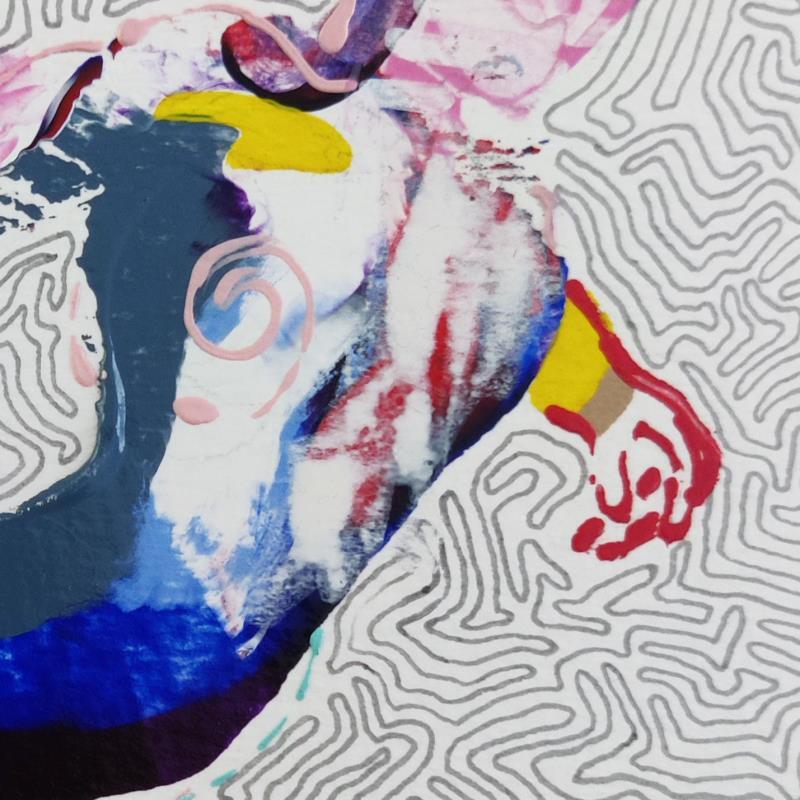 L'artiste a utilisé les techniques Acrylique, Encre pour créer cette peinture petit format sur Papier de style Figuratif sur le thème Nu.