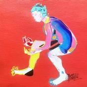 L'artiste a utilisé les techniques Acrylique, Encre pour créer cette peinture petit format sur Toile de style Figuratif sur le thème Nu.