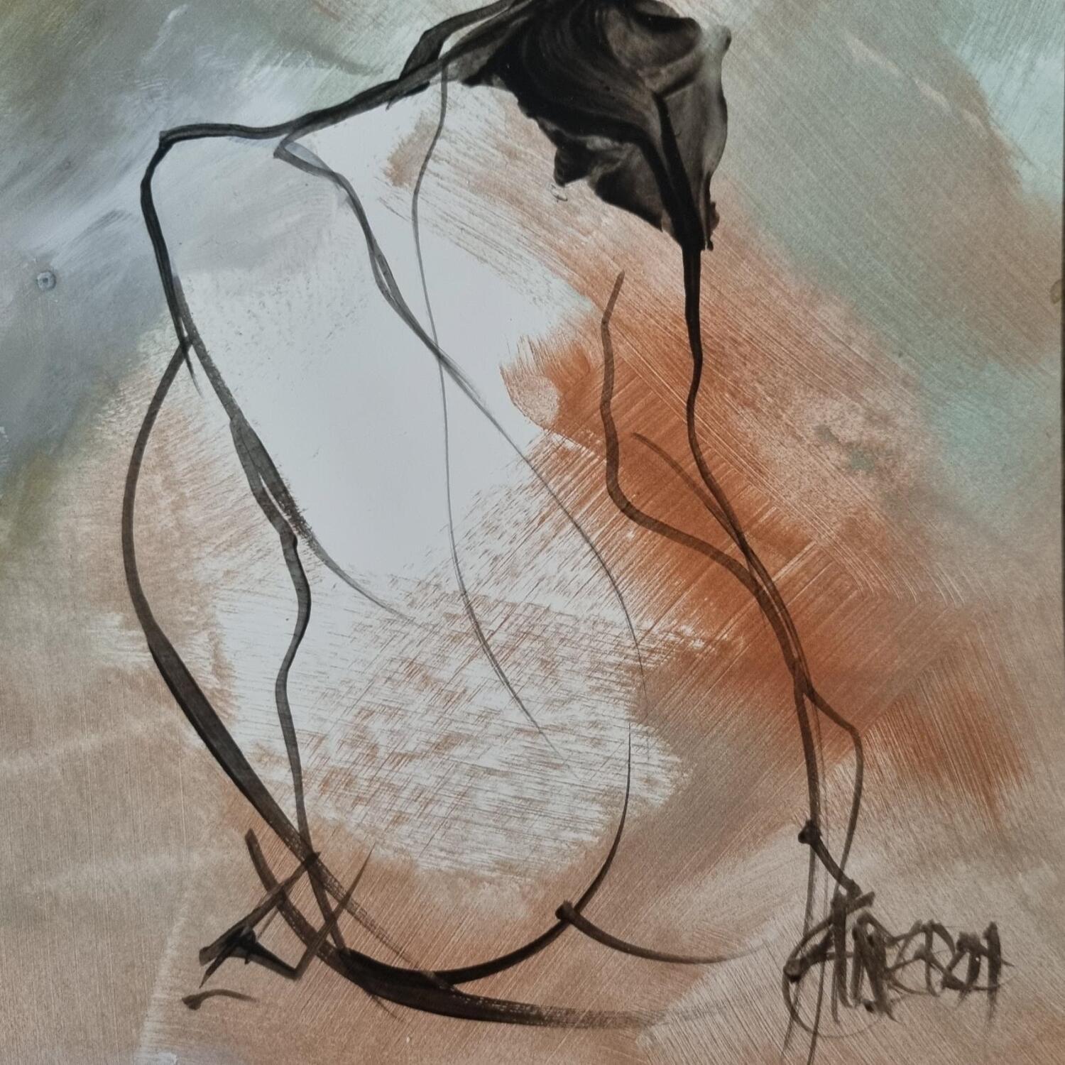 L'artiste a utilisé la technique Acrylique pour créer cette peinture petit format sur Papier de style Figuratif sur le thème Nu.