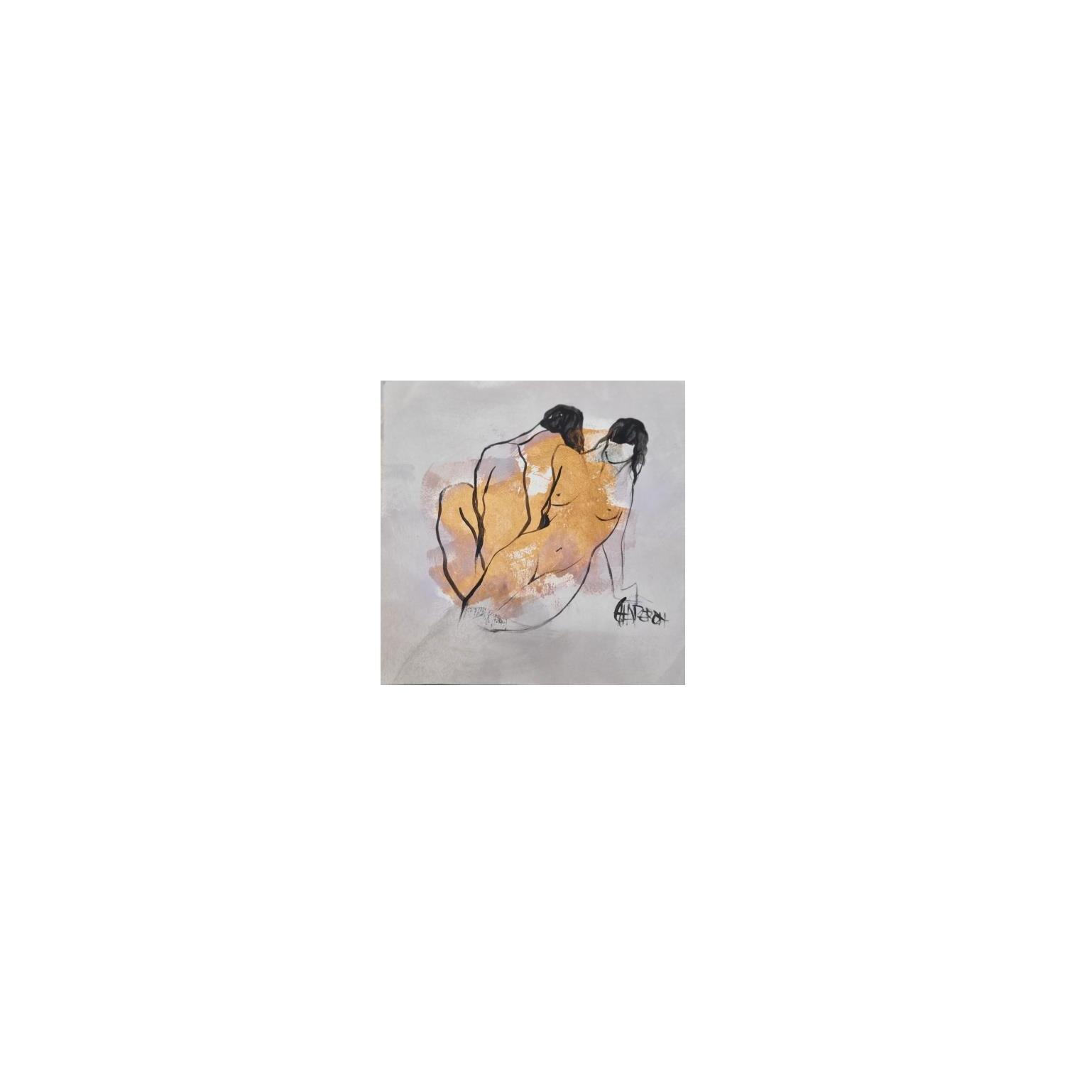 L'artiste a utilisé la technique de l'acrylique pour créer cette peinture de petit format sur papier de style figuratif sur le thème du nu.