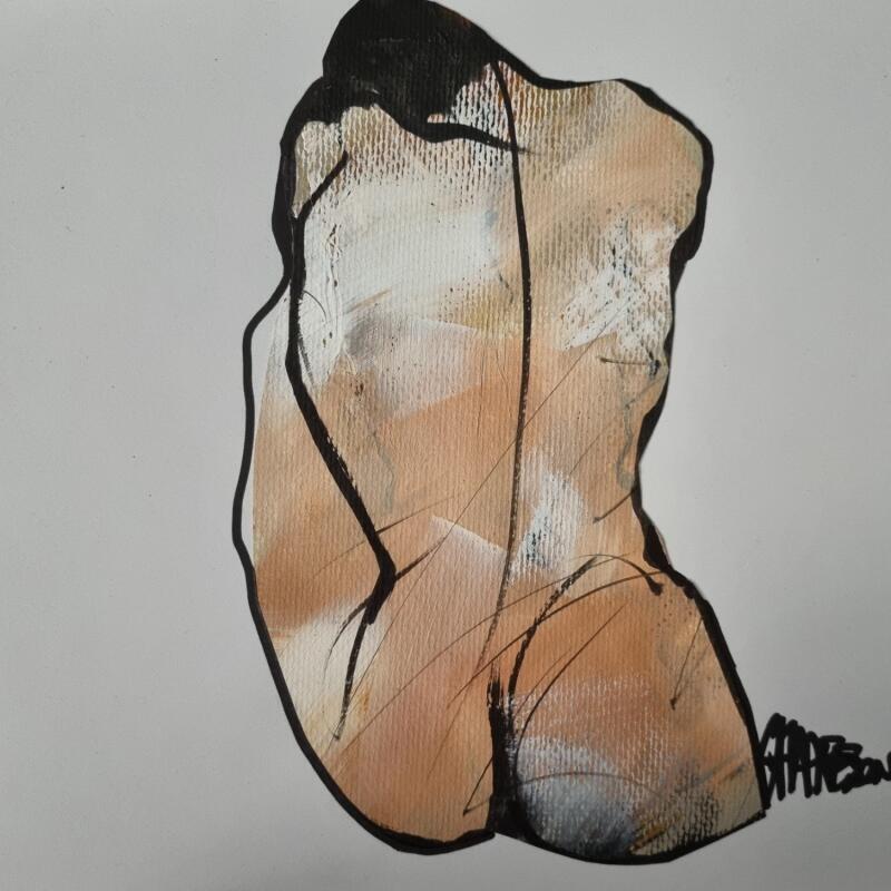 L'artiste a utilisé la technique Acrylique pour créer cette peinture petit format sur Papier de style Figuratif sur le thème Nu.