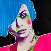 L'artiste a utilisé la technique Acrylique pour créer cette peinture petit format sur Carton toilé de style Figuratif sur le thème Portraits.