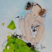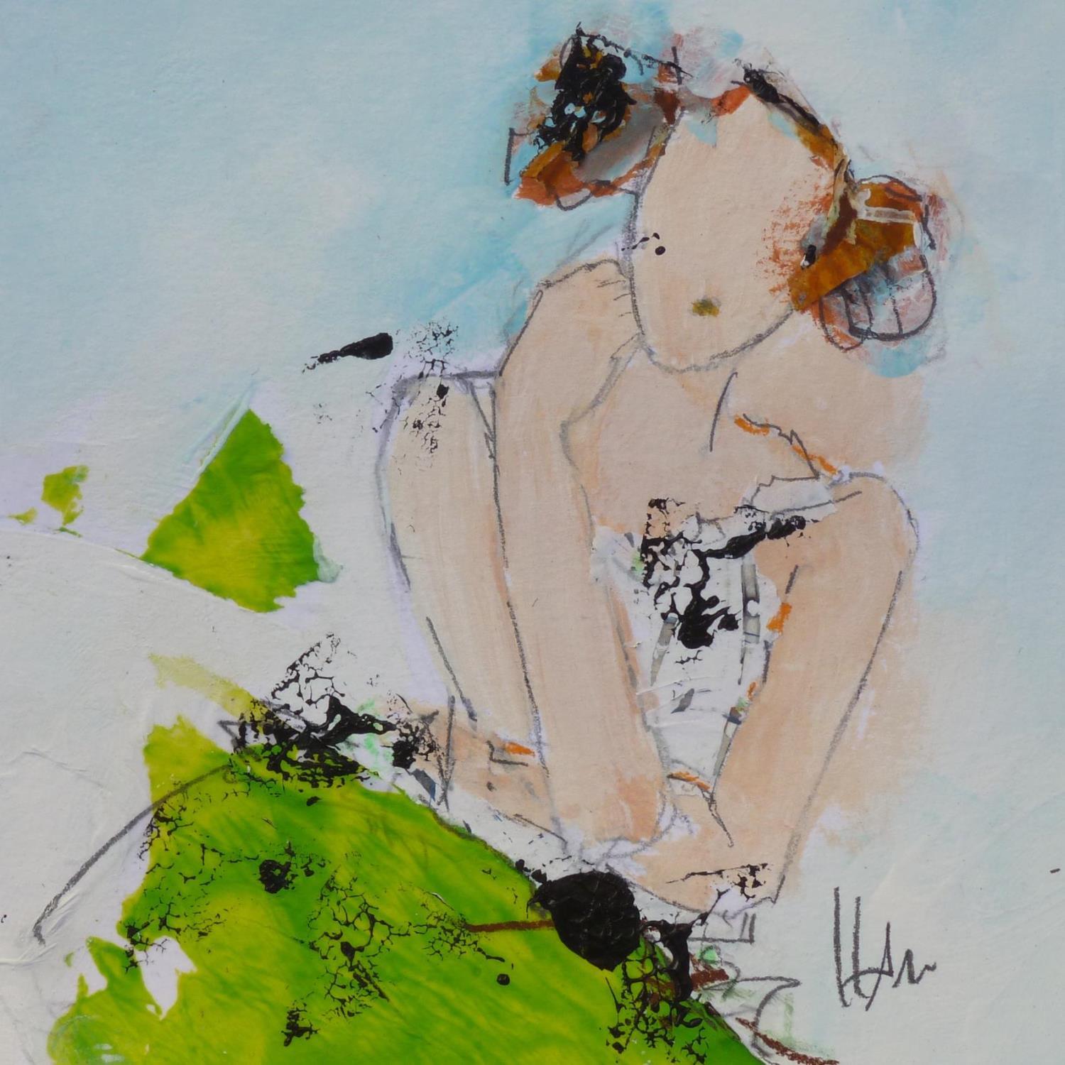 L'artiste a utilisé les techniques Acrylique, Collage pour créer cette peinture petit format sur Papier de style Figuratif sur le thème Portraits.
