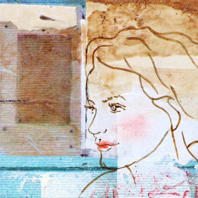 L'artiste a utilisé la technique mixte, Upcycling, pastel, Encre, Acrylique pour créer cette peinture petit format Toile sur Bois de style Art Singulier.