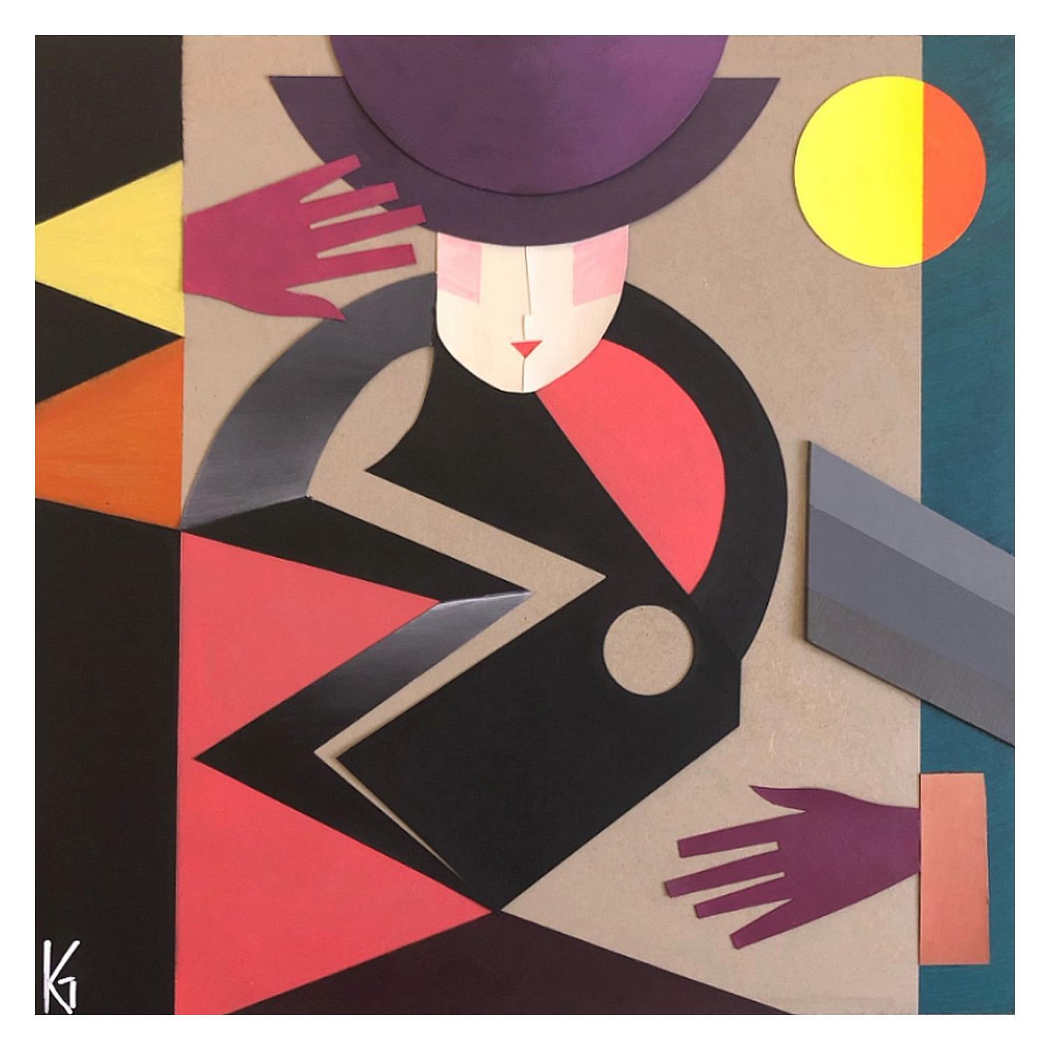 Peinture F4 Attitude 304-53-20250123-23 par Gustavsen Karl | Tableau Figuratif Cinéma Mode Scènes de vie Acrylique Collage