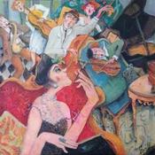 L'artiste a utilisé les techniques Acrylique, Fusain pour créer cette peinture grand format sur Toile de style Figuratif sur le thème Scènes de vie.