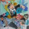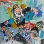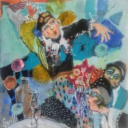 L'artiste a utilisé les techniques Acrylique, Collage, Poudre de marbre pour créer cette peinture petit format sur Carton toilé de style Figuratif sur le thème Scènes de vie.
