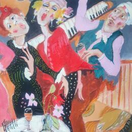 Cette oeuvre d'art contemporain unique et originale "élégants commerages. " a été réalisée par l'artiste contemporain Garilli Nicole.