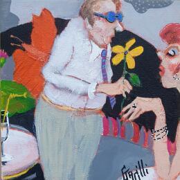 L'artiste a utilisé la technique Acrylique pour créer cette peinture petit format sur Carton toilé de style Figuratif sur le thème Scènes de vie.