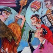 L'artiste a utilisé la technique Acrylique pour créer cette peinture petit format sur Carton toilé de style Figuratif sur le thème Scènes de vie.