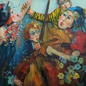 L'artiste a utilisé les techniques Acrylique, Huile, Poudre de marbre pour créer cette peinture grand format sur Toile de style Figuratif sur le thème Scènes de vie.