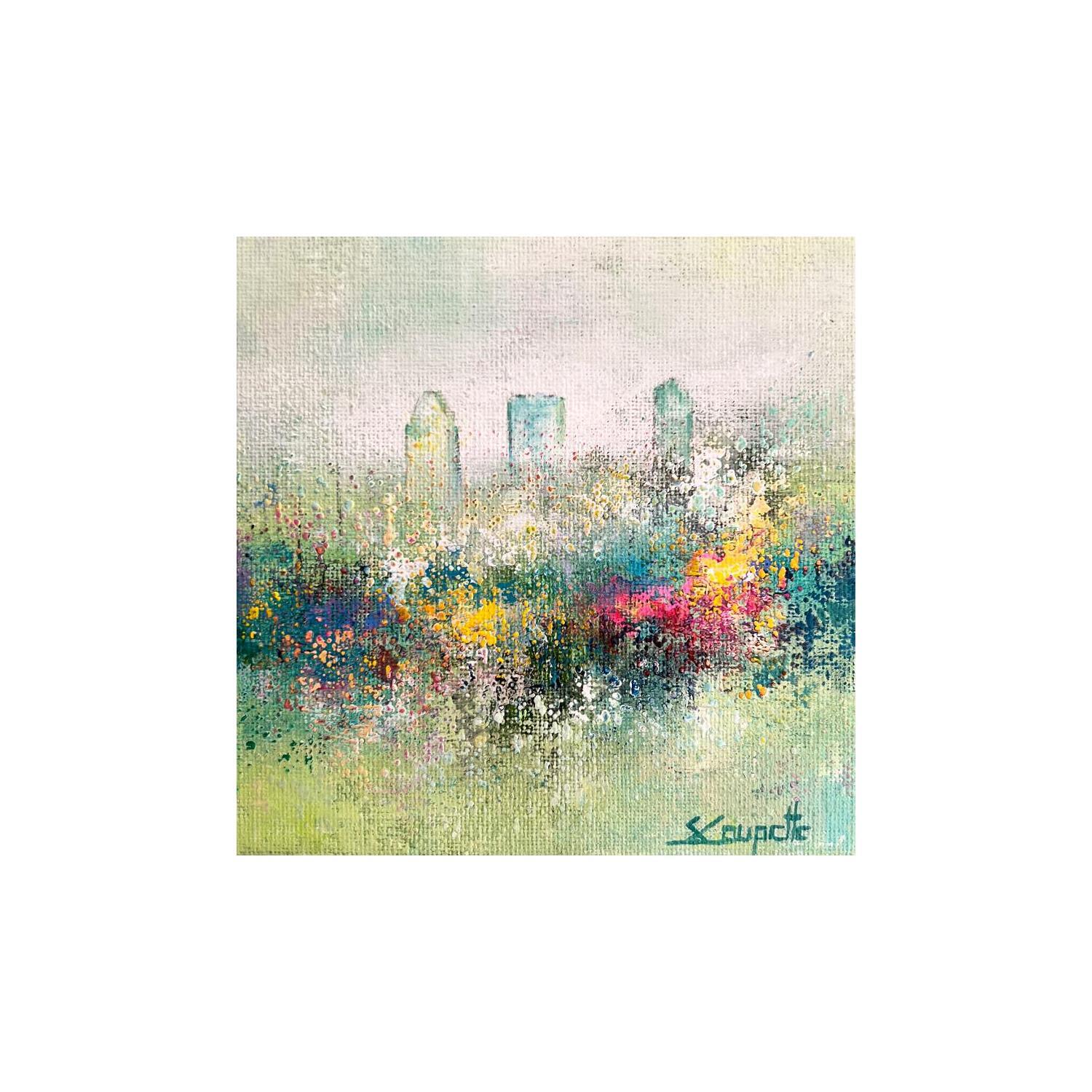 L'artiste a utilisé la technique Acrylique pour créer cette peinture petit format sur Toile de style Figuratif sur le thème Urbain.