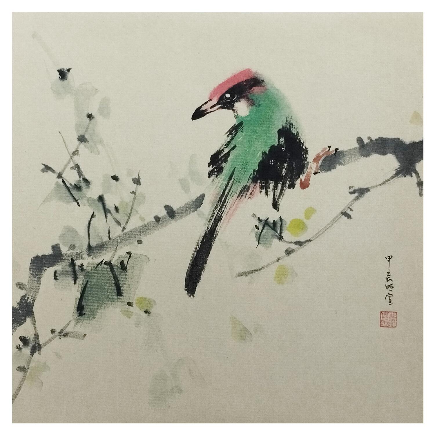 Cette oeuvre d'art contemporain unique et originale "Red-head bird" a été réalisée par l'artiste contemporain Du Mingxuan.