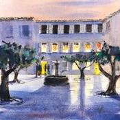 Peinture Place Paul Comte, Toulon par Jones Henry | Tableau Figuratif Aquarelle