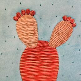 L'artiste a utilisé de la broderie et de l'aquarelle sur du papier d'écorce d'amate pour créer cette jolie peinture.