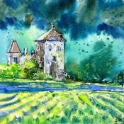 L'artiste a utilisé la technique Aquarelle pour créer cette peinture petit format sur Papier de style Figuratif sur les thèmes Nature, Architecture, Paysages.